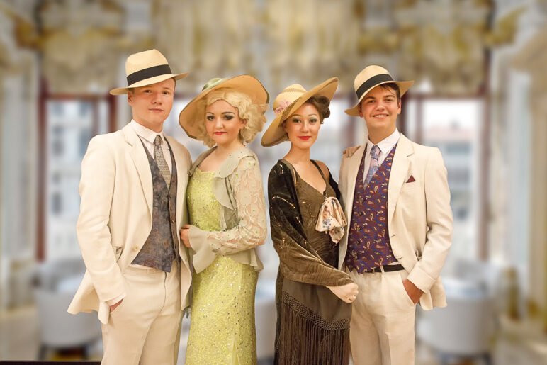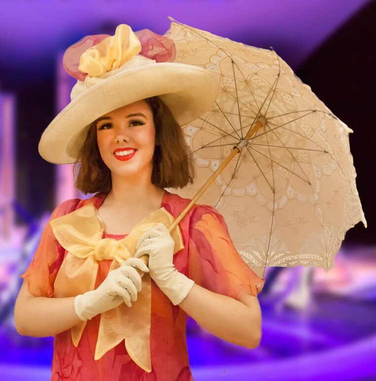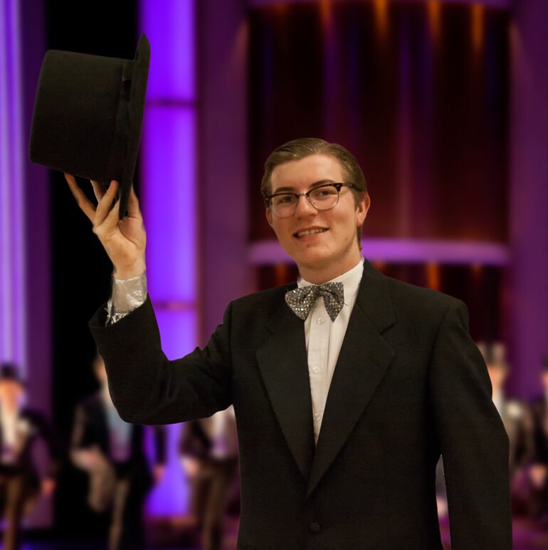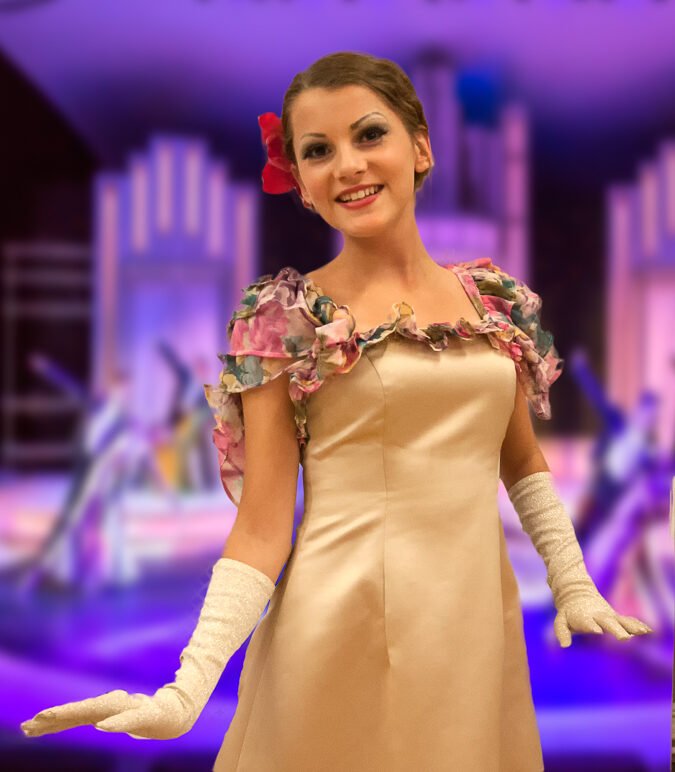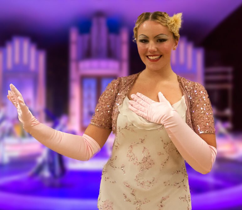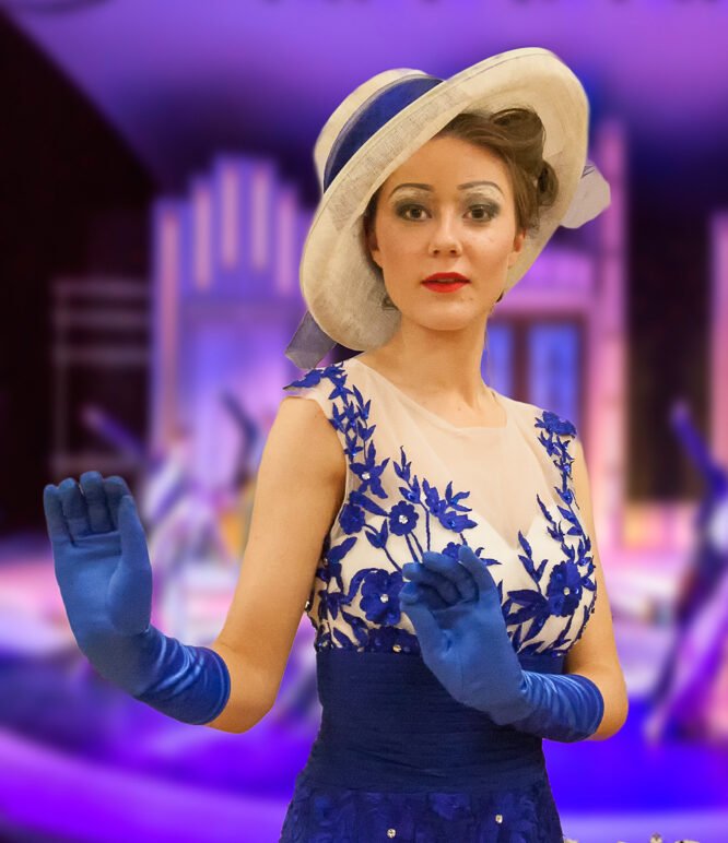 The show is the stage adaptation of the classic Fred Astaire & Ginger Rogers Top Hat, with music by Irving Berlin. BMYP’s production included tap dancing, lavish costumes, Hollywood-glamour style.